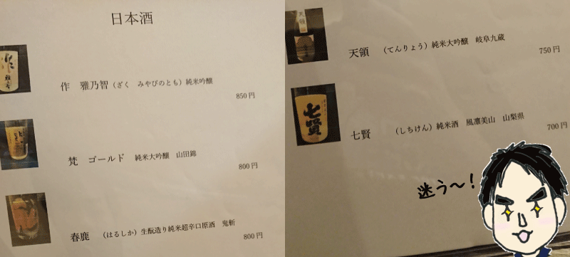 メニューには、美味しそうな酒がいっぱい~!