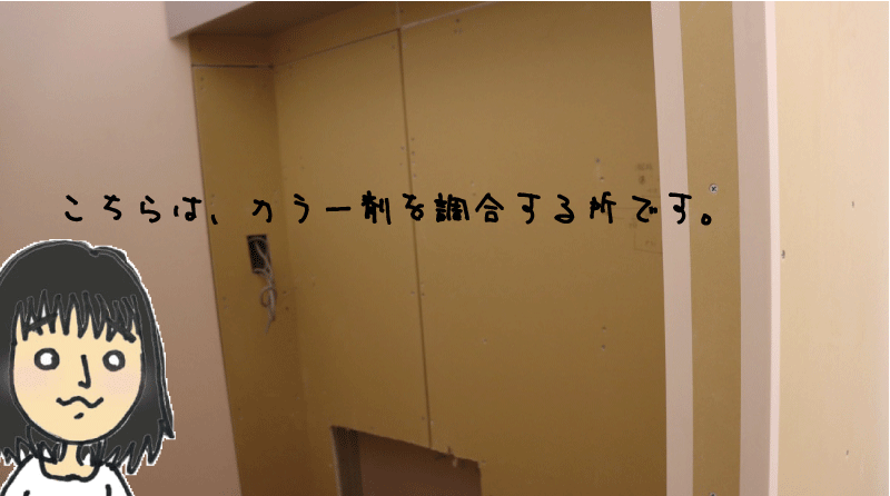 入って左側は、お客様にお出しする飲み物を入れたりするキッチンみたいな場所