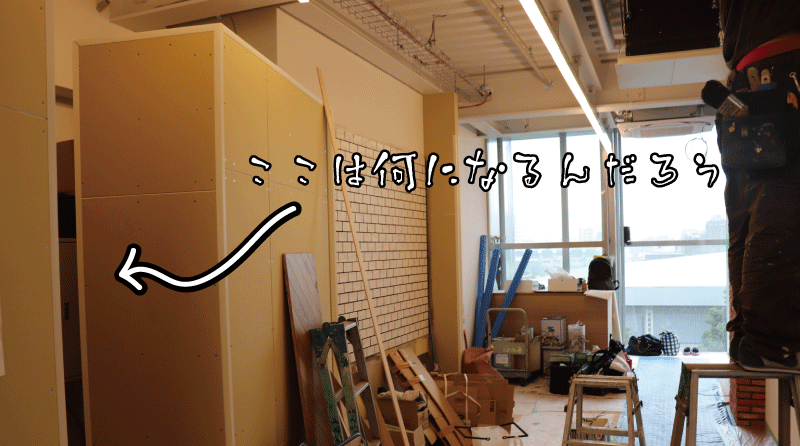 何もない状態だったのに、壁がオシャレになっていたり、個室が出来ていたり…