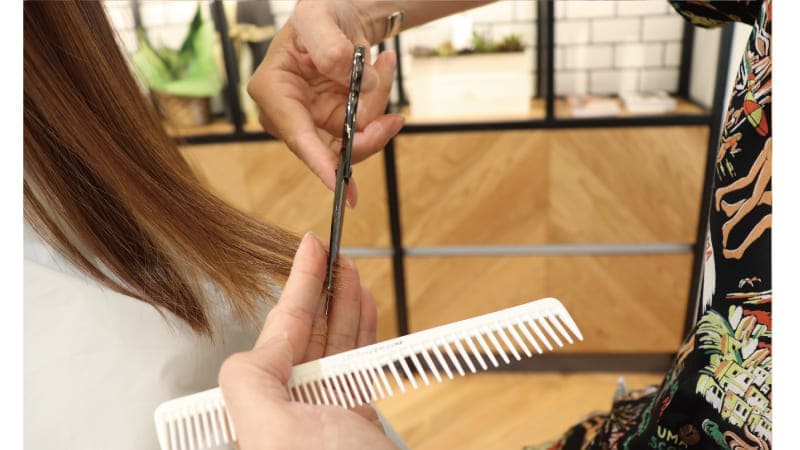 テクスチャーコントロール施術に入る前に髪の状態をチェックしてもらいます。