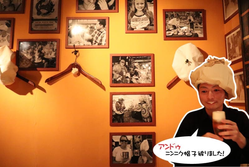 はじめの一っぽの店内には、ニンニクの形をした帽子がたくさん。