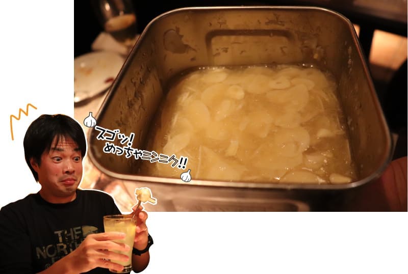 こちら、はじめの一っぽの名物料理『ニンニクの丸揚げ』