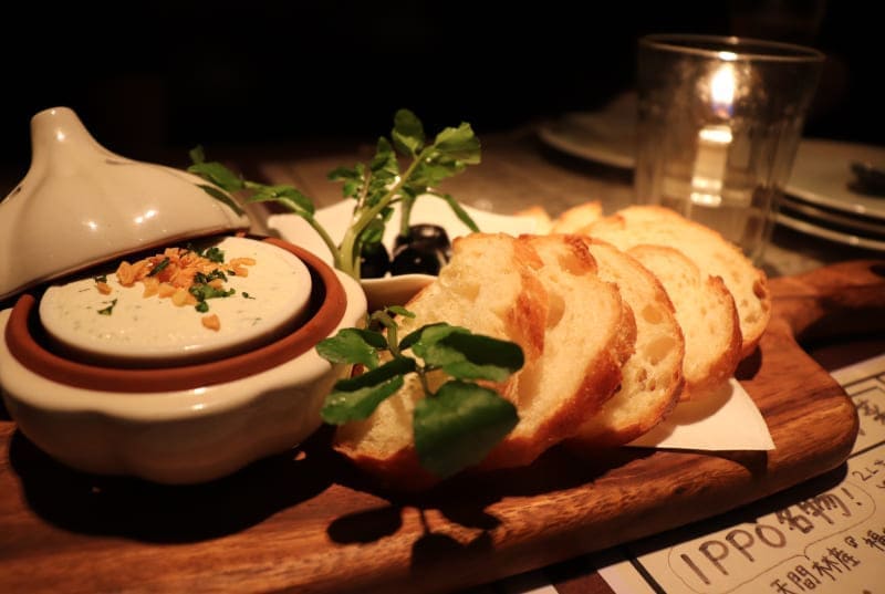 バケットにディップしてそこにオリーブを載せて食べると最高のお酒のお供です✨