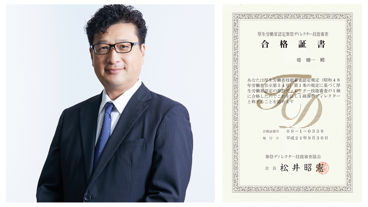 約30年間、葬儀業界で知識や経験を積み、厚生労働省の認定審査である「厚生労働省認定技能審査1級葬祭ディレクター」の資格も取得。